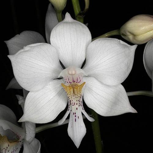 30,00 € IVA inc.Leer másDendrobium jyrdii. También conocida como “orquídea de piedra rosada”. Descrita hace relativamente poco tiempo, 2019. Crece en bosques húmedos, donde los rayos de sol se filtran a través del dosel verde. Sus pétalos delicados, se balancean con la brisa suave. Características de Dendrobium jyrdii DISTRIBUCIÓN: Filipinas RIEGO: Ajustar el riego según la estación. En verano, …