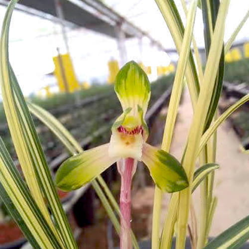 Cymbidium goeringii Chun Lan Zhong Tou. Chun Lan (春蘭) se traduce como “Orquídea de Primavera” y Zhong Tou (中透) → se refiere al patrón translúcido central en las hojas o en la flor, según la línea de cultivo. Es por eso que esta variegación translúcida en la zona central de las hojas, que aporta un aspecto delicado y luminoso incluso cuando la planta no está en flor, la hace una de las orquídeas más apreciadas en Asia por su elegancia, fragancia y su porte compacto.